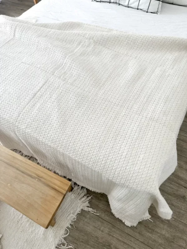 Confeccionada 100% en algodón, tejida en telar automático. Terminación bordes desflecados